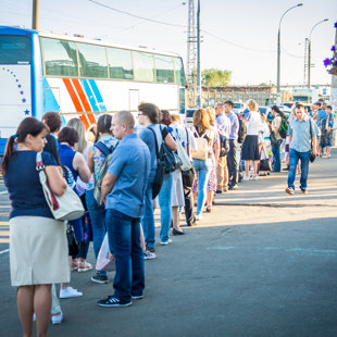 varēja manīt garās rindas uz sabiedrisko transportu, sievieti, kas pārdod